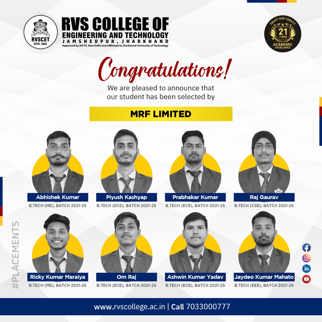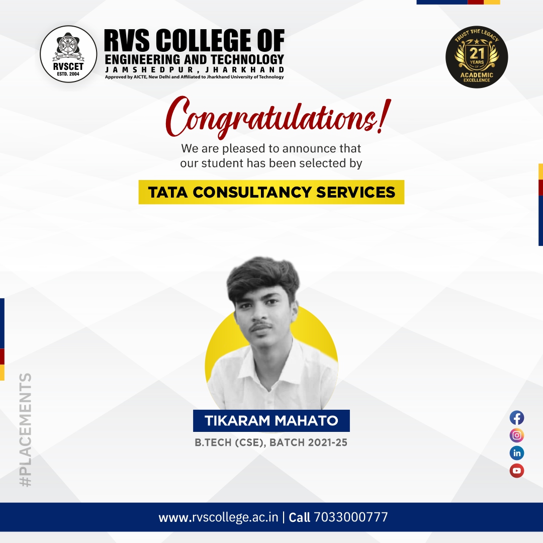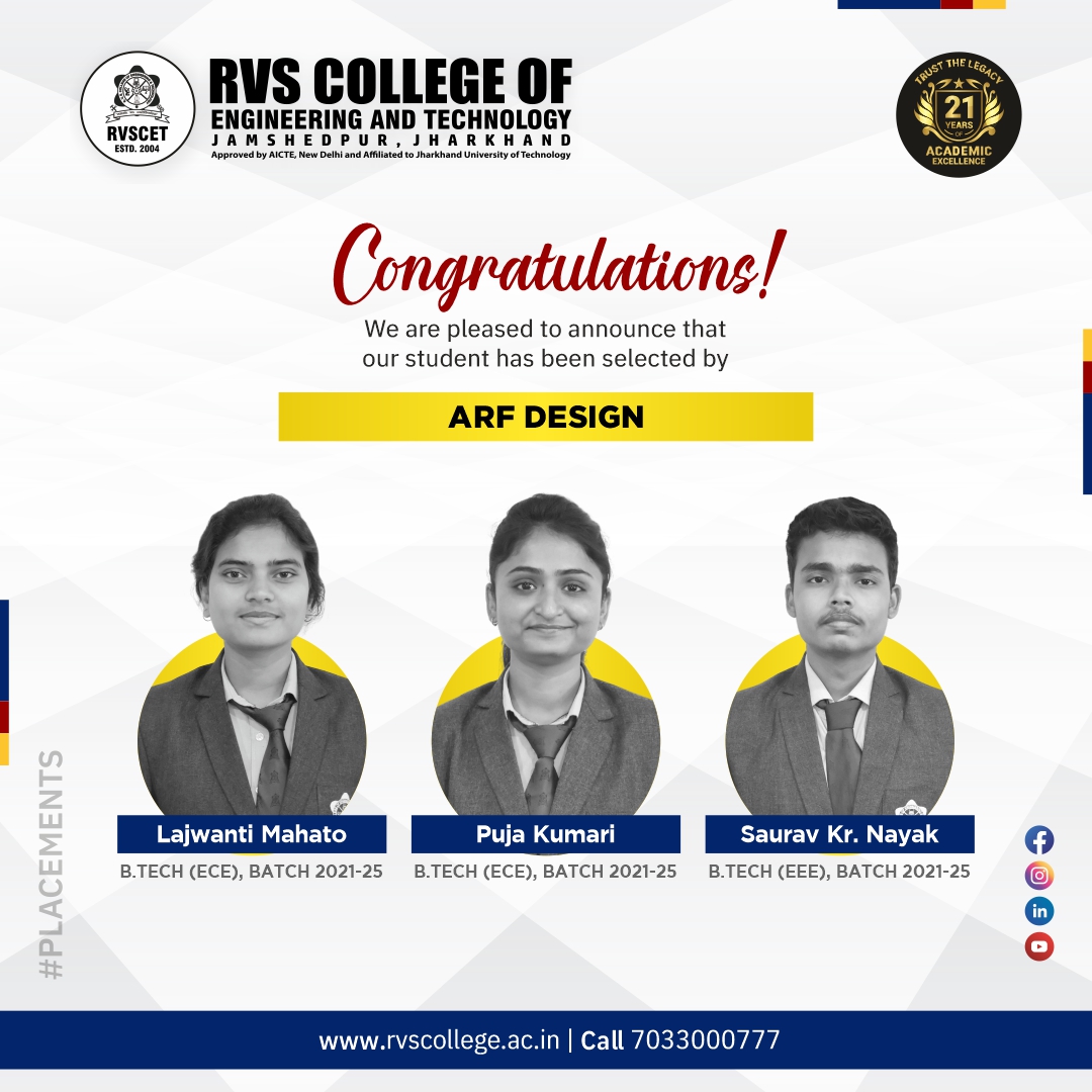 My journey at RVSCET was incredibly fulfilling. The faculty and management encouraged me to constantly push my limits and evolve beyond academics. I was honored as the Branch Topper in all eight semesters and received placement offers from top companies like TCS, Wipro, Accenture, IBM, and Capgemini. RVSCET not only nurtured my technical knowledge but also shaped me as a confident, well-rounded individual. I’m immensely grateful to my alma mater for playing a pivotal role in my growth.