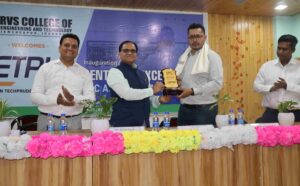 Present on the occasion were Shri Shatrughan Singh, Treasurer of RVS Education Trust, Prof. (Dr.) Rajesh Kumar Tiwari, Principal of the College, Dr. Vikram Sharma, Head of Training and Placement, and Prof. T.P.K. Gautam, Head of the EEE Department. As a gesture of warm hospitality, all dignitaries were welcomed with saplings. The event commenced with the lighting of the ceremonial lamp, symbolizing the beginning of a new chapter in skill-based learning.