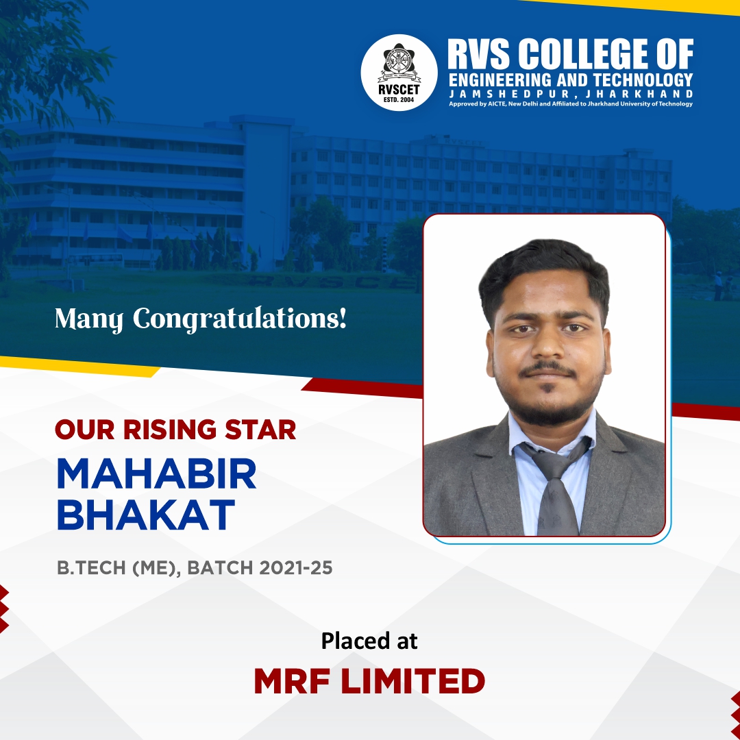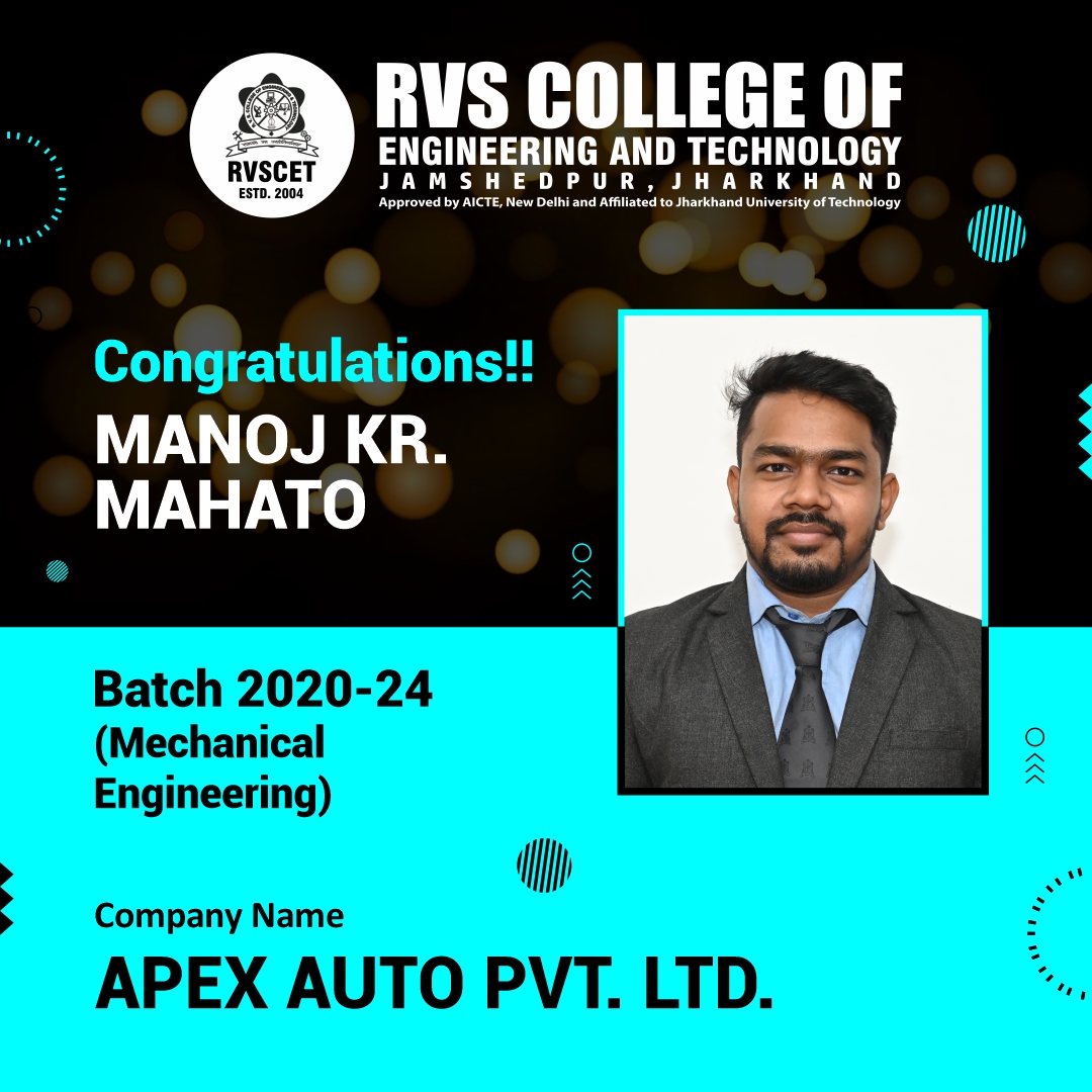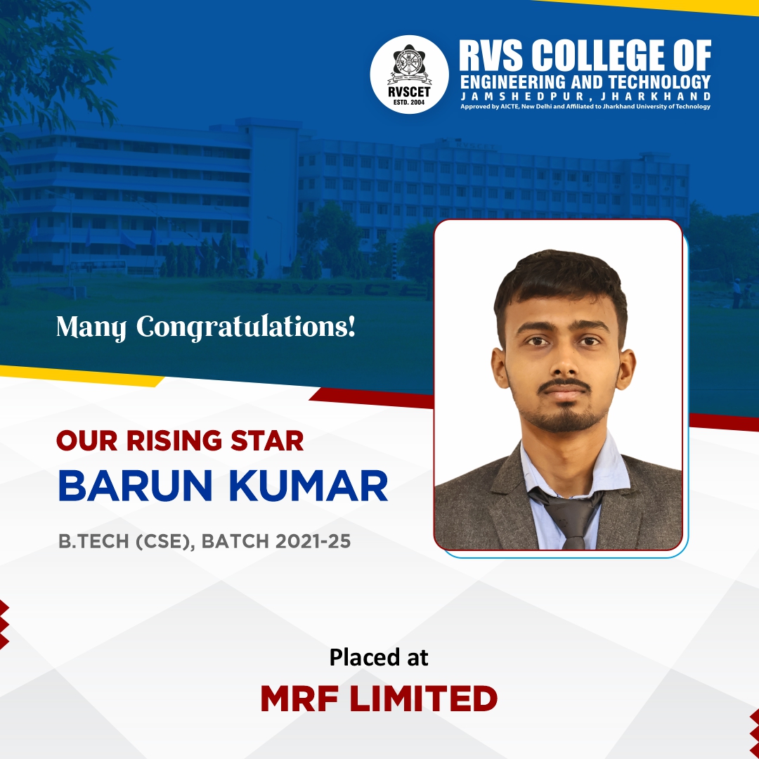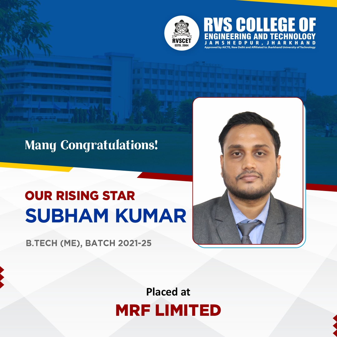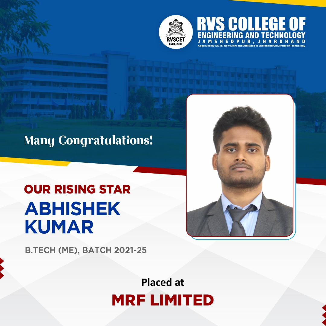 RVS College of Engineering & Technology, Jamshedpur puts all its efforts into bridging the gap between institutes and industries.