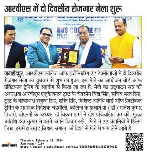 The final Day of a Two-Day Job Fair at RVS College of Engineering and Technology, Jamshedpur