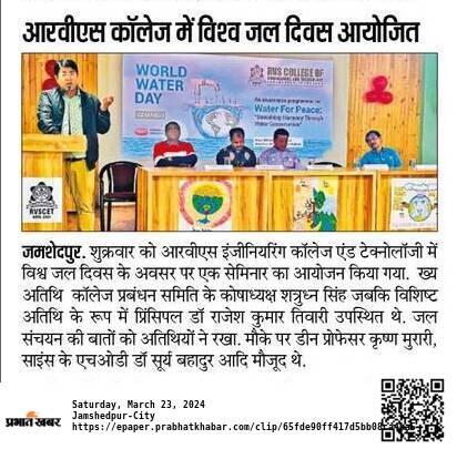 World Water Day celebrate at RVS College of Engineering and Technology, Jamshedpur