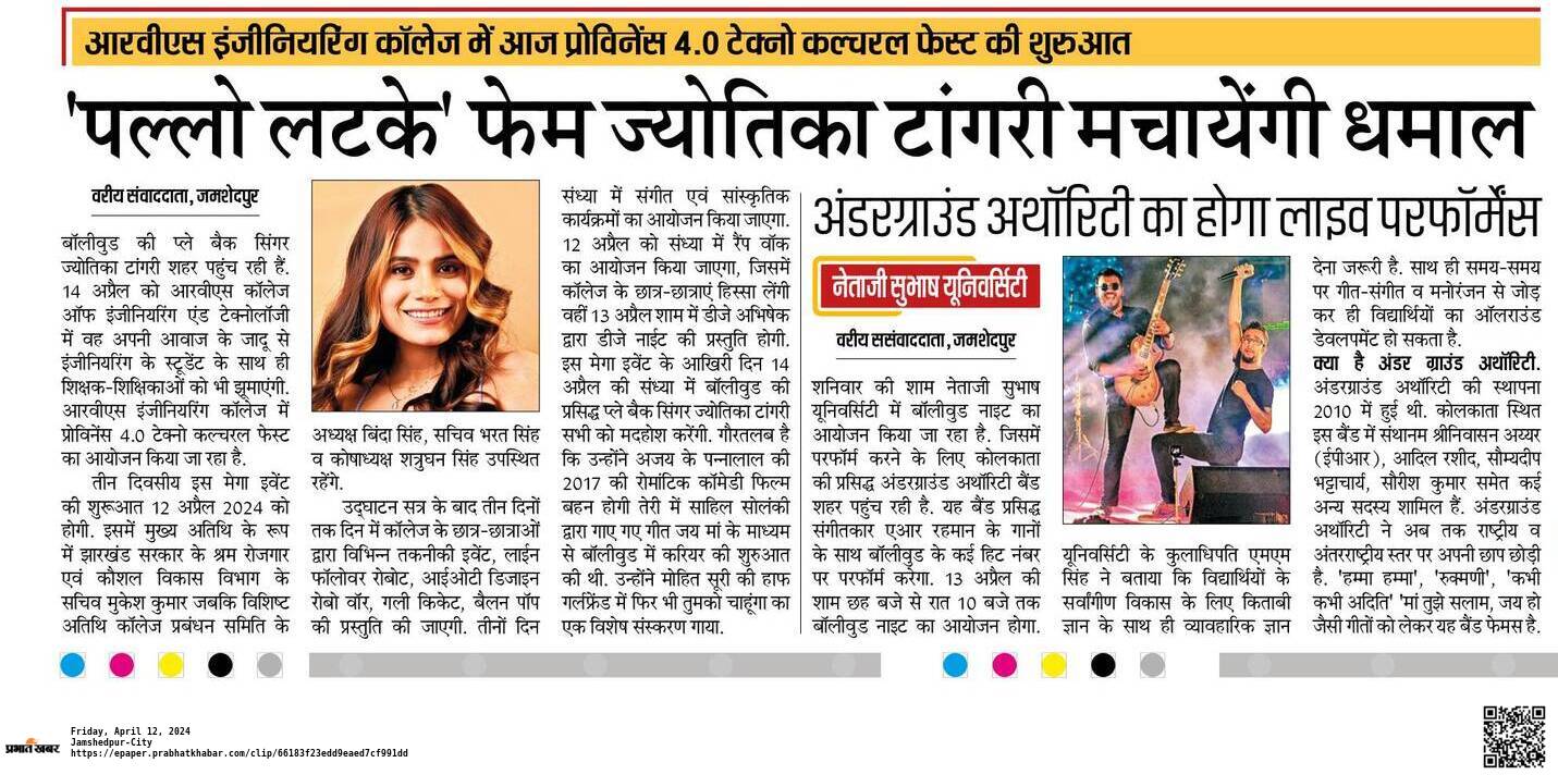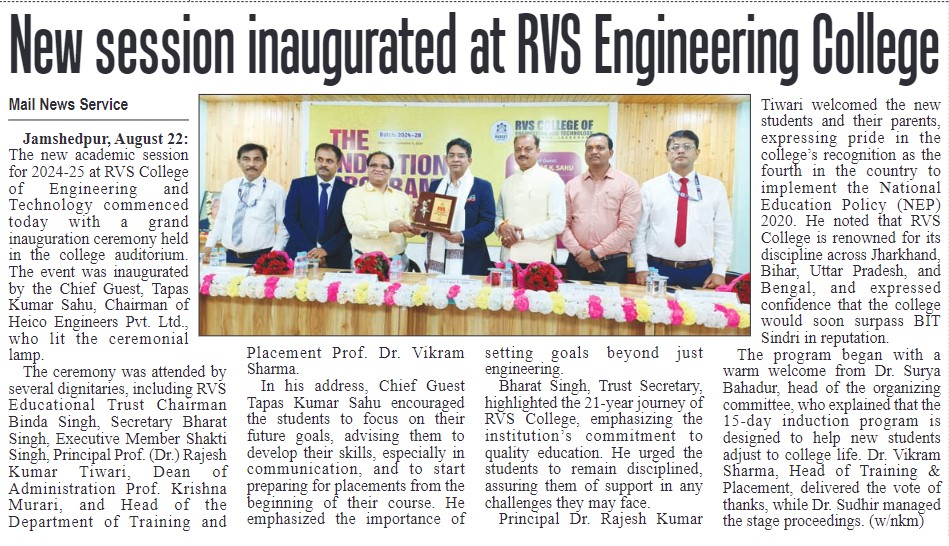 ‘Prarambh’, The Fresher’s Day, of 2023 batch organised at RVS College of Engineering and Technology, Jamshedpur.
