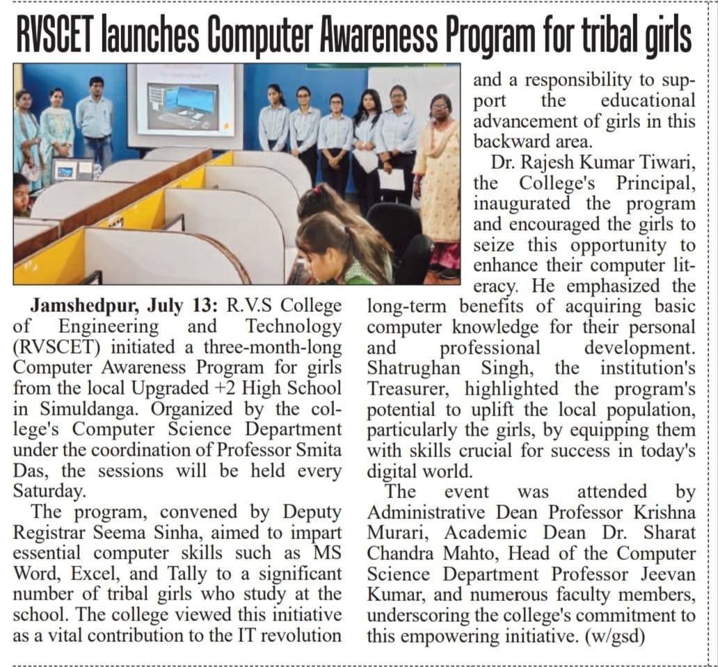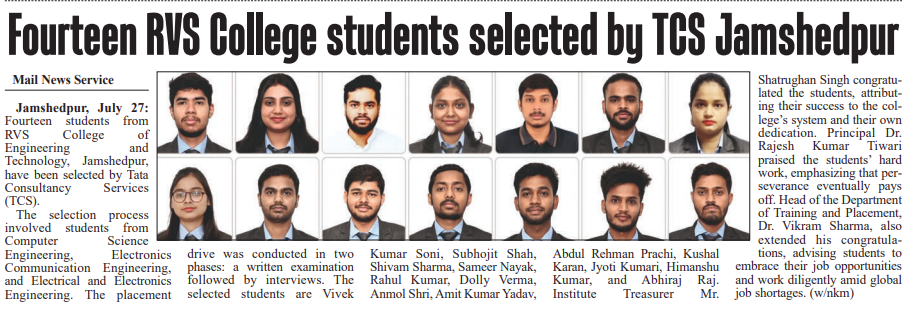 20 students of RVSCET, Jamshedpur got Manki Munda scholarship
