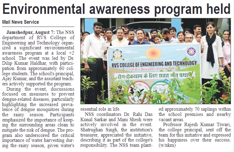 WORLD EARTH DAY CELEBRATED WITH GREAT ZEAL AT R.V.S. COLLEGE OF ENGINEERING AND TECHNOLOGY, JAMSHEDPUR