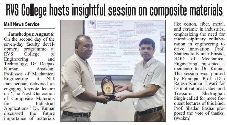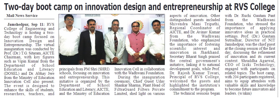 One Day Workshop on Intellectual Property at RVS College of Engineering and Technology, Jamshedpur.