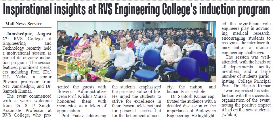 Induction Programme for Batch 2025 begins at RVS College of Engineering and Technology