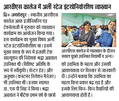 A program on Early Stage Entrepreneurship at RVSCET, Jamshedpur